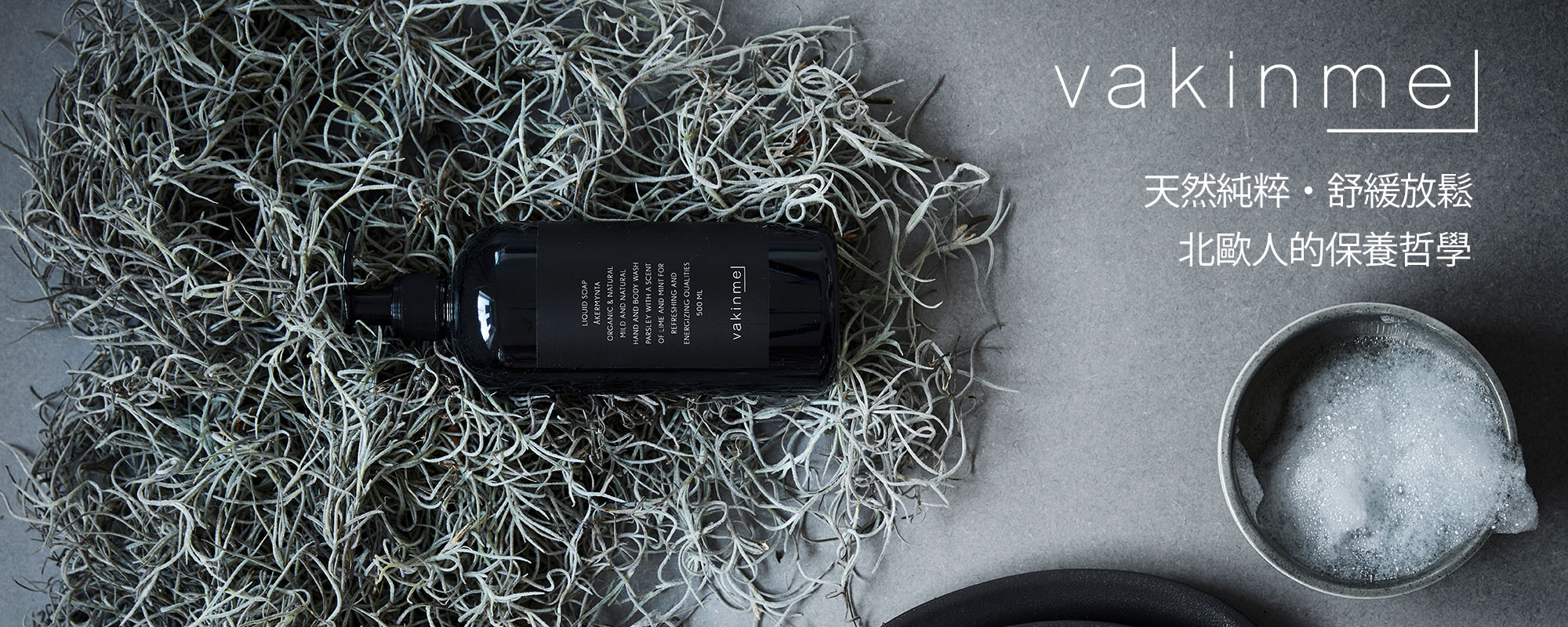 來自瑞典的品牌,靈感源自於北歐大自然,將冬日的黑暗和夏日的光線形成鮮明對比,運用在包裝與品牌色調上。vakinme關注人類最大的課題與責任,做到降低生產對環境的影響,藉由森林和土地的保護, 所有產品皆在瑞典製造,並使用天然植物性有機成份,加入令人放鬆的天然精油香調,體驗回歸自然的幸福感,每一次使用vakinme的產品,都會是一場美好又放鬆的身心靈旅程。