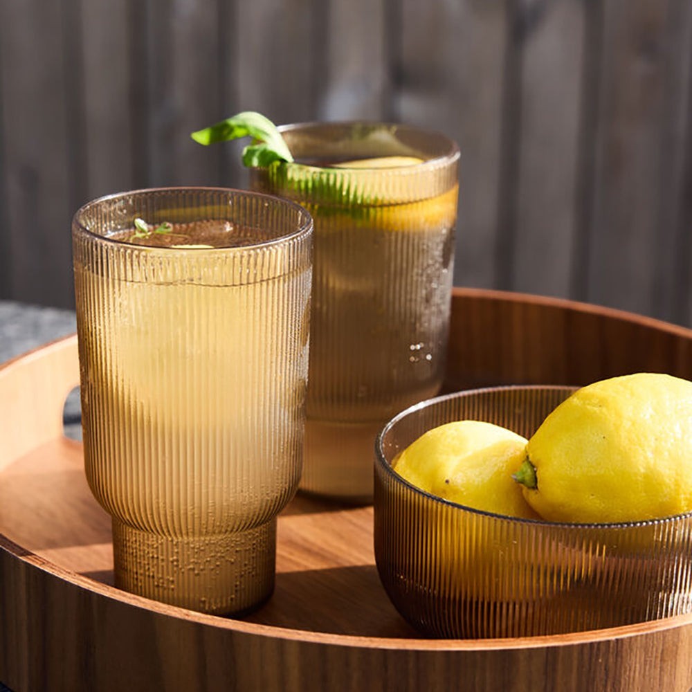 採用 rPET材質製成,兼顧輕量、耐用與環保理念。全系列提供多種杯款選擇,可自由搭配,打造一致且富有風格的餐桌配置。