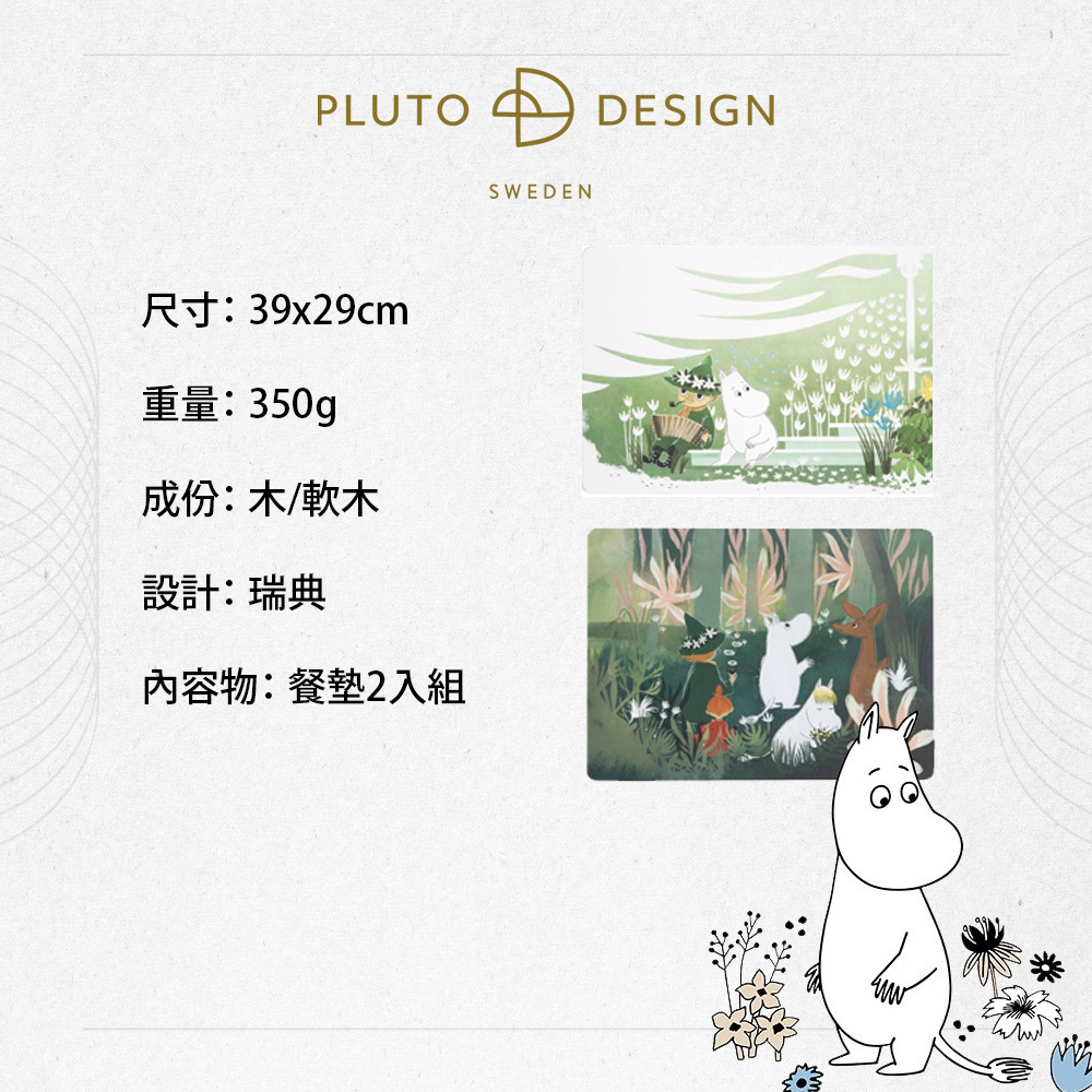 嚕嚕米二款不同的插畫餐墊