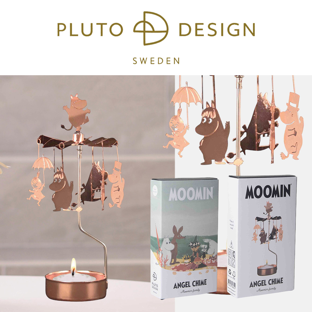 嚕嚕米家族與好朋友吊飾,搭配特殊銅色燭座,藉由熱能飛舞旋轉,豐富展現嚕嚕米的世界,溫暖又具有童趣。