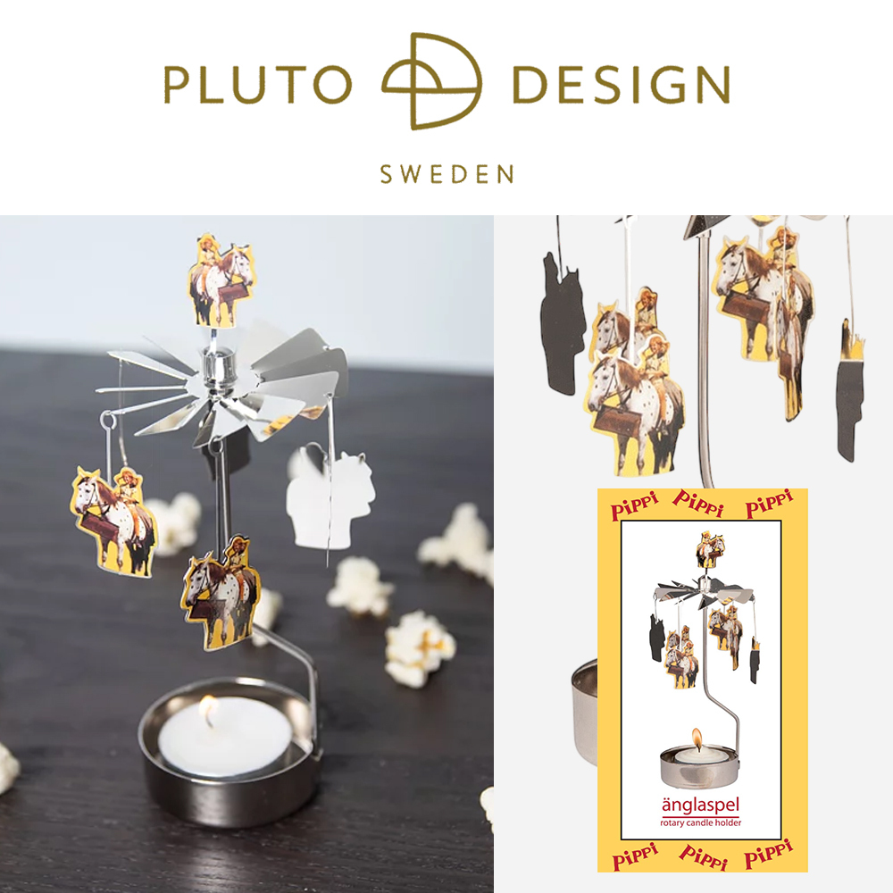 聖誕節系列,融入了瑞典經典童話故事,皮皮長襪裡的皮皮擁有豐富想像力、冒險精神,帶著你進入充滿奇幻的北歐聖誕世界。總共有兩款,長襪皮皮及長襪皮皮與馬兒,可供挑選。緩慢升溫的蠟燭,驅動吊飾優雅旋轉,仿佛將童話世界的奇幻帶入現實,更讓節日賦予更多的意義和想像