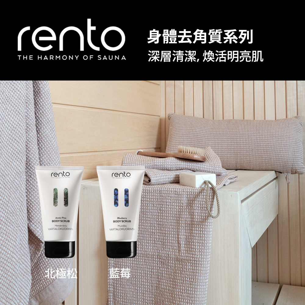 來自芬蘭的rento是桑拿三溫暖原創品牌,品牌DNA帶著芬蘭原始的生活理念,設計獨特,從洗沐保養至所有桑拿的用品,都因為帶著芬蘭的自然根源而深受喜愛。品牌的設計與生產都在芬蘭在地完成,帶您體驗真正的舒緩・平衡的芬蘭桑拿。