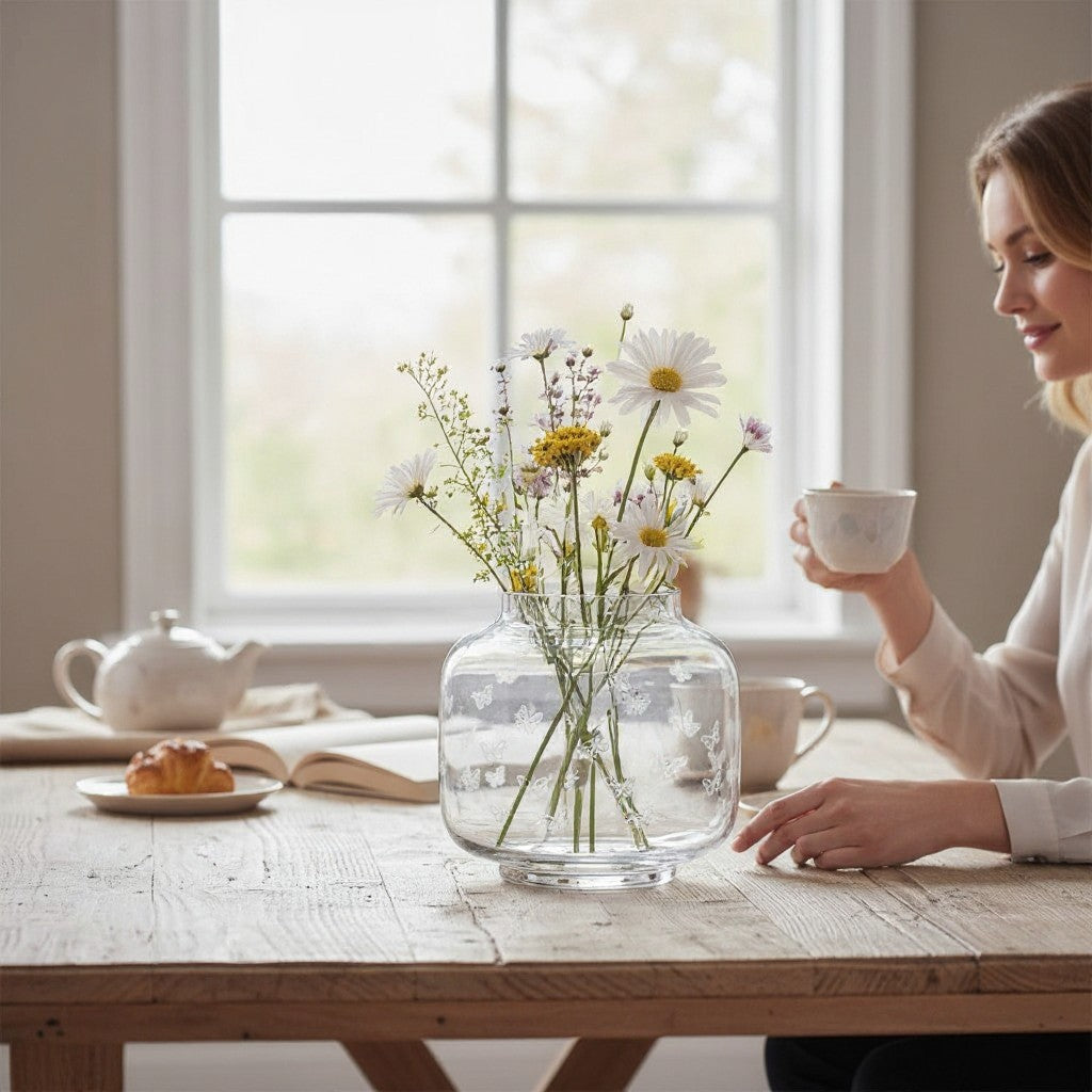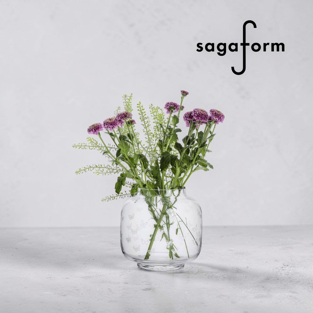 Sagaform 攜手隸屬瑞典皇室御用的Orrefors&Kosta Boda品牌所有的瑞典玻璃工藝 SEA Glasbruk,結合經典技術打造質感花器。透明瓶身搭配蝴蝶圖騰設計,為花材增添靈動與層次,讓整體更顯優雅又帶有一絲活潑氛圍。