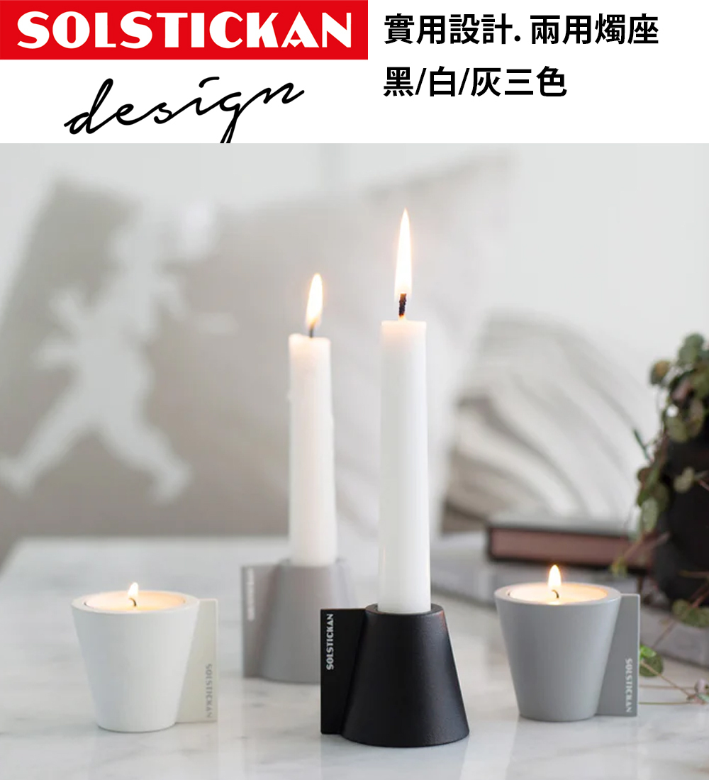 雙面翻轉燭台,適用於圓形蠟燭與柱狀蠟燭兩種形式,由塗層鋼製成,非常漂亮又簡約的設計,一個燭座滿足二種不同的用法。共有黑/白/灰三色可供選擇。