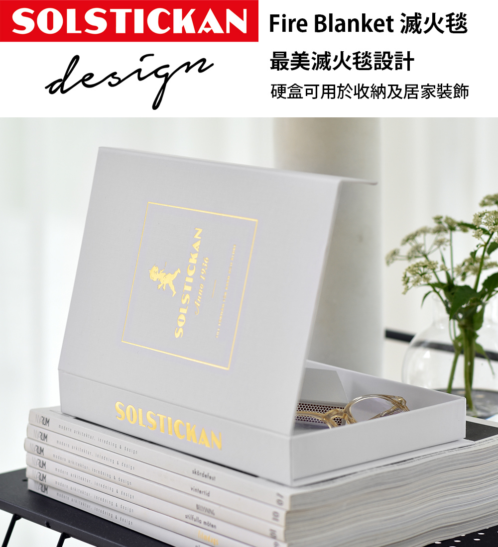時尚鋼鐵盒中裝入居家安全必備的滅火毯,鐵盒上帶有經典的小男孩壓紋,適合放置廚房或居家空間的牆上。滅火毯本身由玻璃纖維製成,可承受高達 500 度的溫度。盒子背面有清晰的使用說明以及用於掛在牆上的孔洞,讓滅火毯成為居家安全守護的一部分。