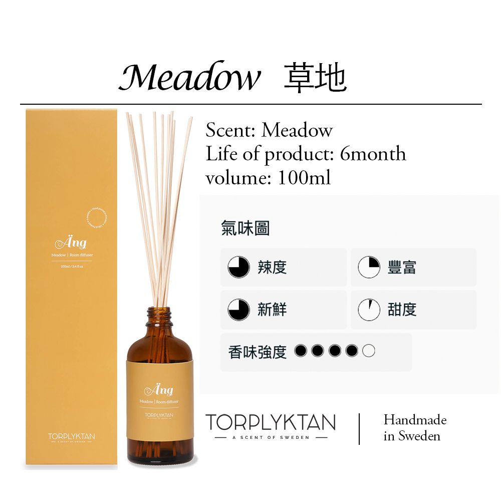 Meadow草地 香氣設計靈感自夏末傍晚,漫步在剛修剪過的草地上,空氣中瀰漫著整日曬乾乾草的香味。襯著柔和的香草與沈穩的檀香做為基調,搭配乾草香氣和茉莉花的香氣相得益彰。