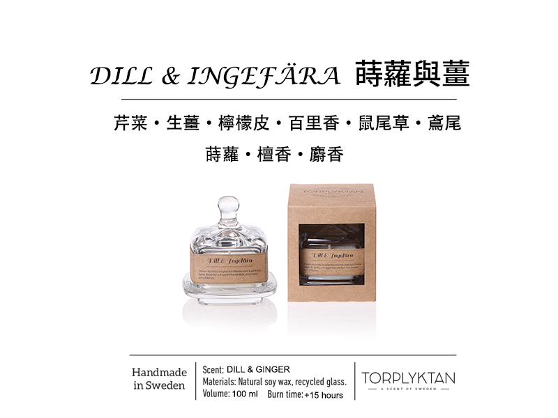 蒔蘿與薑-蒔蘿的獨特香調浸泡在薑的能量中,一種強烈又令人精神振奮的香調,誘人與充滿活力